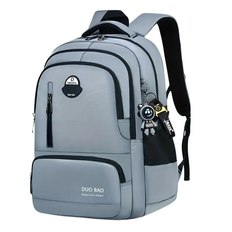 The Modern and Functional Gray Backpack is perfect for combining style and practicality in everyday life. Designed for students, professionals, and travelers, it accompanies you elegantly in all your activities. Its padded and adjustable shoulder straps ensure optimal comfort, even during long days, while its ergonomic design makes carrying easier. With its multiple compartments, you can easily organize your belongings: the large main compartment holds a laptop, books, or clothes, and the front and side pockets offer convenient storage for your accessories and water bottles. Made of waterproof polyester, this bag is durable and resistant to daily wear and tear, with a unique touch provided by its charm keychain.